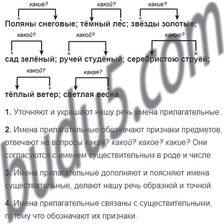 Прочитай текст. Найди имена прилагательные. Выпиши их вместе с именами существительными, к которым они относятся. Покажи графически, от какого слова к какому ставится вопрос.