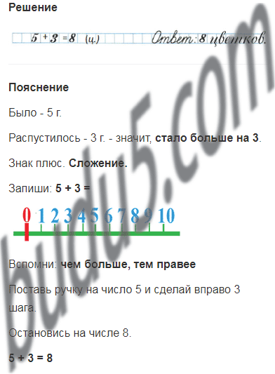 3. В букете было 5 гвоздик, а потом распустилось ещё 3 цветка.