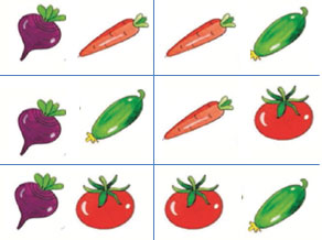 Сколькими способами можно составить набор из двух овощей? Зарисуй эти наборы в тетради.