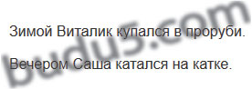 Слова для выбора: зимой, вечером; Виталик, Саша; в проруби, на катке; купался, катался.