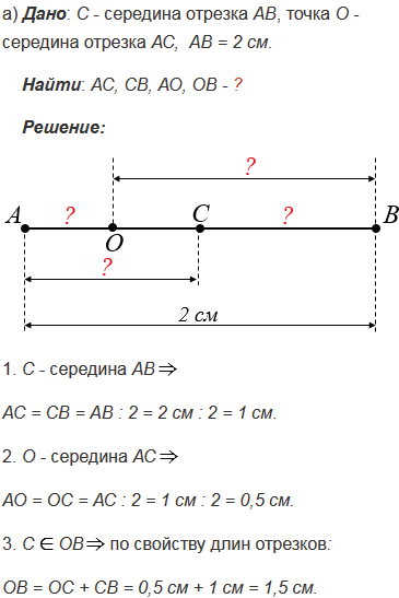 Точка С - середина отрезка АВ, точка О - середина отрезка АС. Найдите: