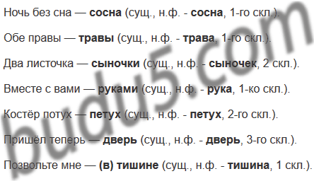 Образец. Ночь без сна — сосна (сущ., н. ф. — сосна, 1-го скл.).