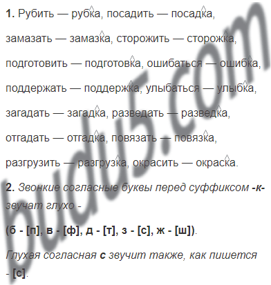 2. Сравните произношение согласных звуков с их обозначением буквами перед суффиксом -к-.