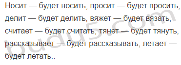 Носит — будет носить, просит, делит, вяжет, считает, тянет, рассказывает, летает.
