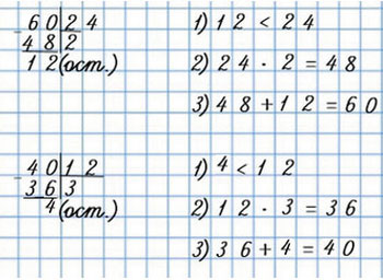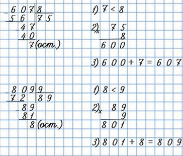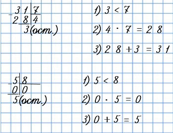 1) 56 : 4 = 40 : 4 + 1 : 4 = 14 2) 14 • 0 = 0 3) 0 + 28 = 28 |