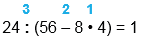 1) 8 • 4 = 32 2) 56 - 32 = 24 3) 24 : 24 = 1 |