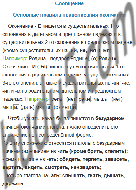 По итогам проведённой работы при выполнении предыдущего задания составьте план выступления «Основные правила правописания окончаний» и подготовьте небольшое сообщение на эту тему.