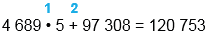 4 689 • 5 + 97 308 = 120 753
