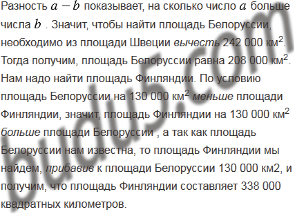 Площадь Швеции равна 450 000 км2, что на 242 000 км2 больше площади Белоруссии, которая на 130 000 км2 меньше площади Финляндии. Сколько квадратных километров составляет площадь Финляндии?