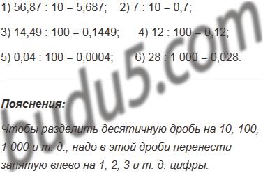 1) 56,87 : 10; 3) 14,49 : 100; 5) 0,04 : 100;