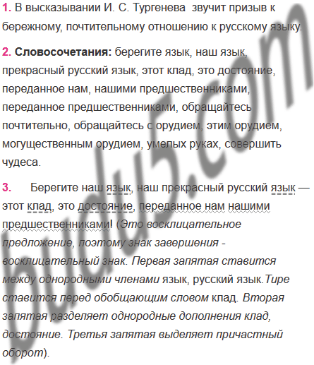Берегите наш язык, наш прекрасный русский язык — этот клад, это достояние, переданное нам нашими предшественниками! Обращайтесь почтительно с этим могущественным орудием: в руках умелых оно в состоянии совершить чудеса.