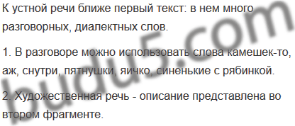 1. В разговоре можно использовать слова камешек-то, аж, снутри, пятнушки, яичко, синенькие с рябинкой.
