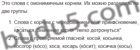 Косой, косынка, косогор, коса, косичка, косарь, прикосновение, касаться.