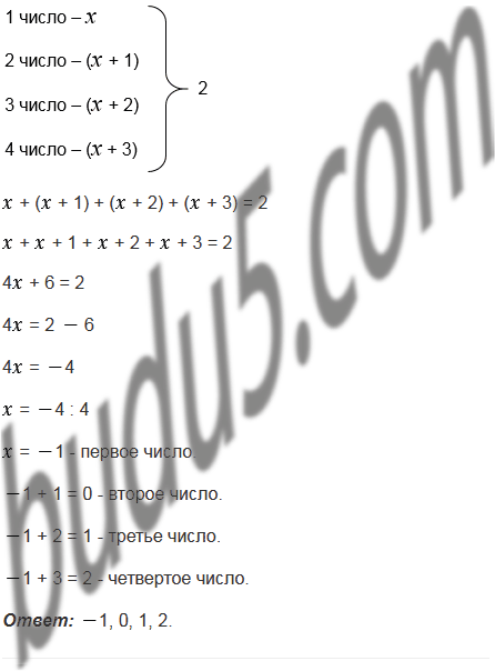 Сумма четырех последовательных чисел равна 2. Найдите эти числа.
