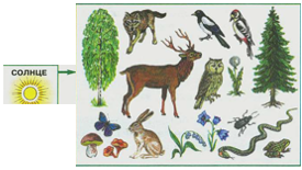 На схеме слева мы видим объекты неживой природы, а справа – живой. Стрелки указывают на связь между неживой и живой природой.
