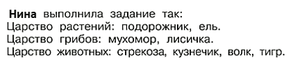 Серёжа к царству растений дописал грибы: мухомор, лисичка. Это неправильно. У грибов есть своё царство.