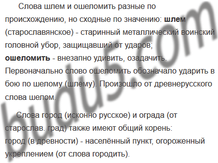 Подумайте, какая связь между словами шлем и ошеломить, город и ограда. Попробуйте догадаться, что могли значить слова ошеломить и город в древности.