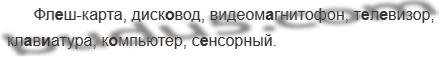 Фл..ш-карта, диск..вод, видеом..гнитофон, т..л..визор, кл..в..атура, к..мпьютер, с..нсорный.