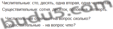 Сто — сотня, десять — десяток, одна вторая — половина, одна четвёртая — четверть.