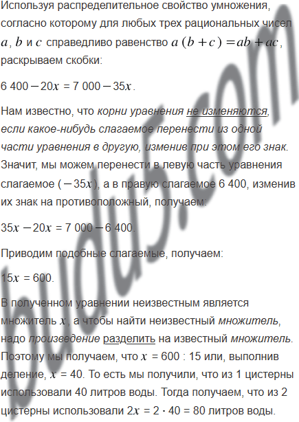В одной цистерне было 200 л воды, а в другой - 640 л. Когда из второй цистерны использовали в 2 раза больше воды, чем из первой, то во второй осталось в 3,5 раза больше воды, чем в первой. Сколько литров воды использовали из каждой цистерны?