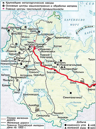 1. Что можно узнать по карте (с. 92 – 93, с. 120 – 121) об экономике России в конце XIX века?
