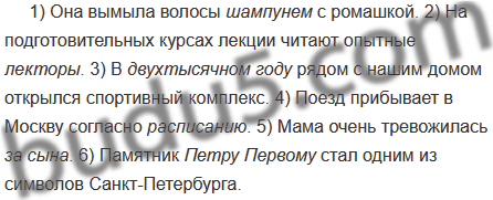 1) Она вымыла волосы (шампунь) с ромашкой. 2) На подготовительных курсах лекции читают опытные (лектор). 3) В (2000 год) рядом с нашим домом открылся спортивный комплекс. 4) Поезд прибывает в Москву согласно (расписание). 5) Мама очень тревожилась (сын). 6) Памятник (Пётр Первый) стал одним из символов Санкт-Петербурга.