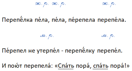 Перепёлка пела, пела, перепела перепела.