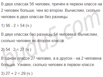 Задание № 2. В двух классах 56 человек, причем в первом классе на 2 человека больше, чем во втором. Сколько человек в каждом классе?