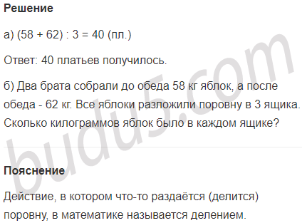 а) В одном отрезе было 58 м ткани, а в другом - 62 м. Из всей этой ткани сшили платья, расходуя на каждое по 3 м. Сколько получилось платьев?