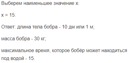 3) Бобр отличный пловец и ныряльщик. Узнай, какое максимальное время он может находиться под водой, выбрав наименьшее из полученных значений х.