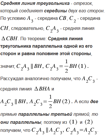Для неравностороннего треугольника АВС точка О является центром описанной окружности, Н - точка пересечения прямых, содержащих высоты АА1, ВВ1 и СС1, точки А2, В2, С2 - середины отрезков АН, ВН, СН, а точки А3, В3, С3 - середины сторон треугольника АВС. Докажите, что точки А1, В1, С1, А2, В2, С2, А3, В3, С3 лежат на одной окружности (окружность Эйлера).