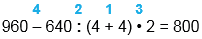 960 - 640 : (4 + 4) • 2 = 800