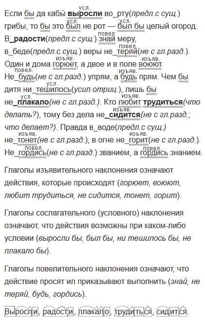 1. Спишите. Подчеркните глаголы. Определите наклонение. Объясните, что обозначает глагол каждого наклонения.