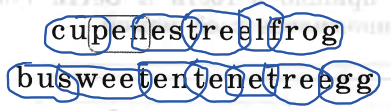 4. Обведи все слова, которые ты сможешь найти в этих цепочках.