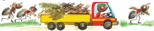 Муравей Вопросик понял, как он может помочь муравьям, чтобы они немного отдохнули. На лужайке, где раньше играли дети, лежал игрушечный грузовик. Муравьишка решил его использовать. У грузовика большой кузов, в него поместится много веточек. Осталось разобраться, где выключатель батареек на грузовике. Муравей Вопросик изучил всю машинку и смог её включить.