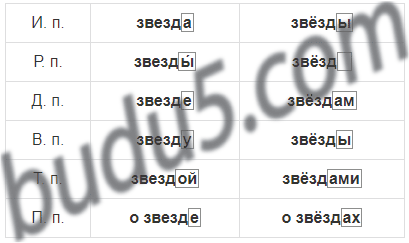 Просклоняй существительное звезда в единственном и множественном числе, выдели окончания.