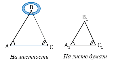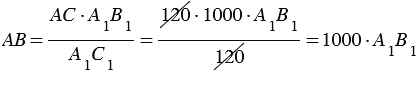 , поэтому измерив расстояние А1В1 в миллиметрах, мы сразу получим расстояние АВ в метрах, т.к. в 1 м = 1000 мм.