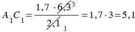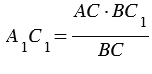 АСВ (по 1 признаку подобия треугольников), поэтому сходственные стороны треугольников А1С1В и АСВ пропорциональны: